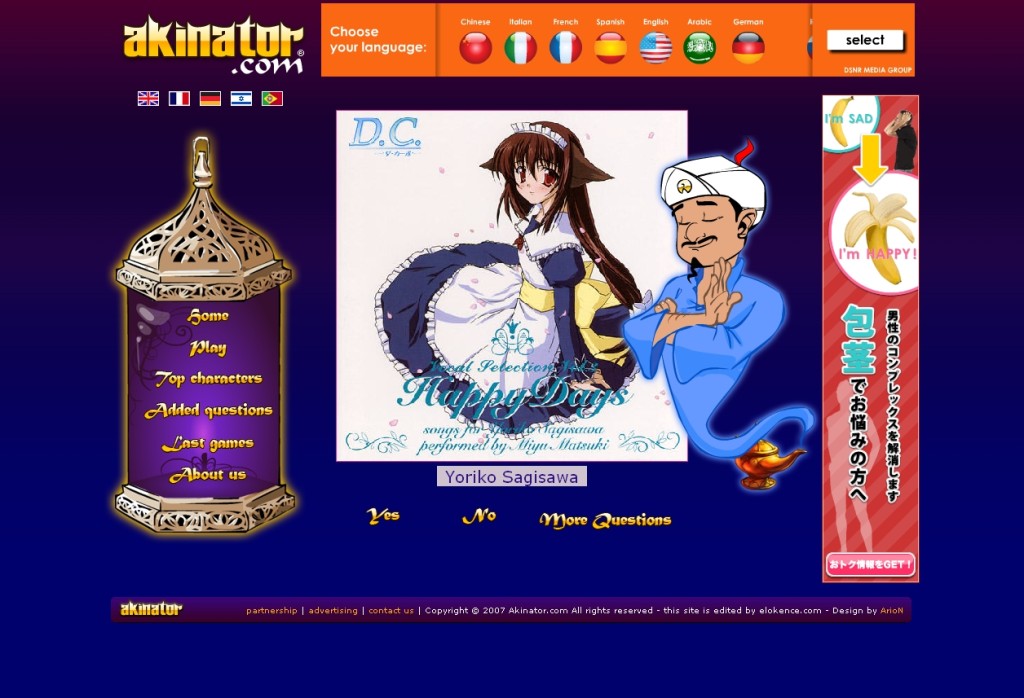 20前後の質問に答えるだけで自分が好きな、ハリウッド女優から日本の歌手、アニメのキャラクターまで何でも当ててしまうというというサイト。ギャルゲーブログさんから。