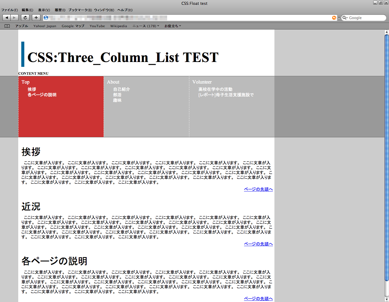 CSSのテスト用に最近作ったファイルに手を加えて作ってみた。